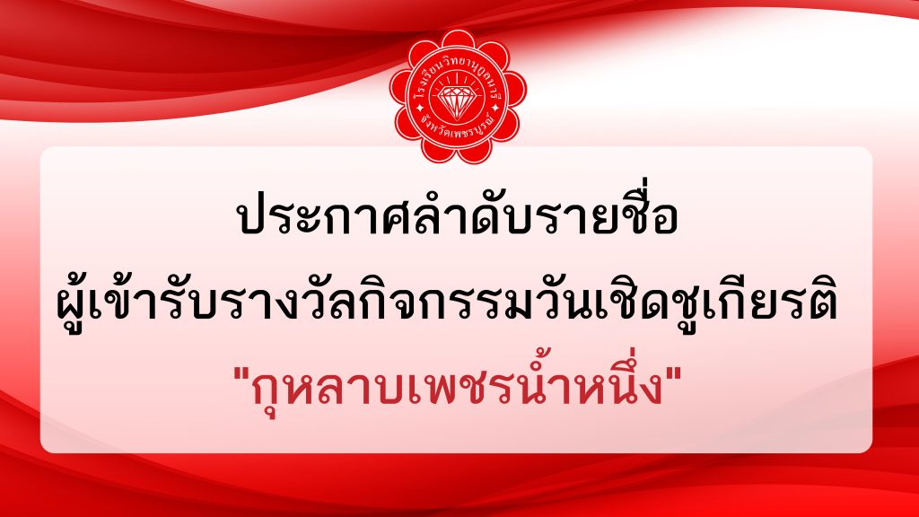 ประกาศลำดับรายชื่อผู้เข้ารับรางวัลกิจกรรมวันเชิดชูเกียรติ “กุหลาบเพชรน้ำหนึ่ง” Read More »